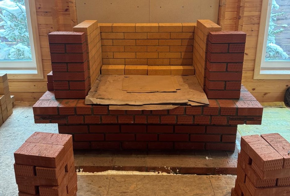Независимая плита, демпфер и вывод нулевой отметки; подготовлена площадка под шамот и приток воздуха.