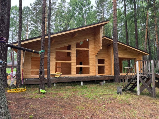 - Стены дома уже отшлифованы, имеют приятный древесный запах и цвет