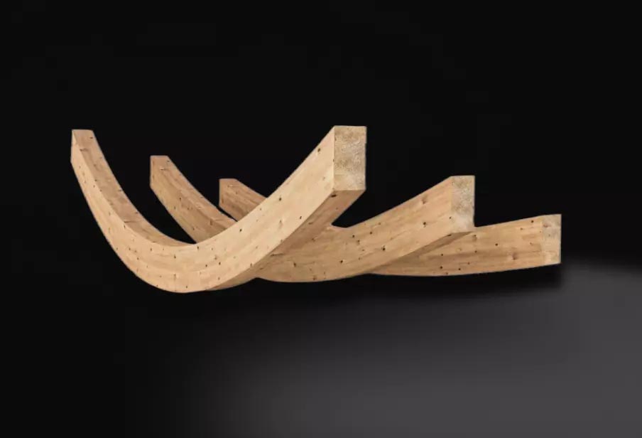 Гнутоклееные балки используют там, где нужно уйти от прямых линий и при этом сохранить полноценную несущую работу конструкции.