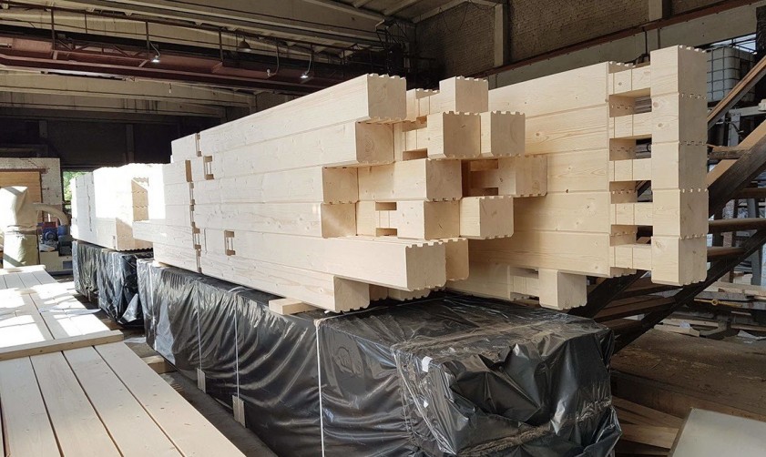 При производстве используется клей AkzoNobel. Клееный материал обеспечивает высокую прочность и жёсткость, а также хорошие показатели огнестойкости. В результате конструкция получается долговечной и «собранной» строго по проекту.