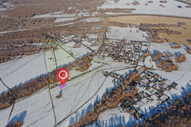 поселку ведет новая асфальтированная дорога. Участки расположены за