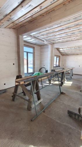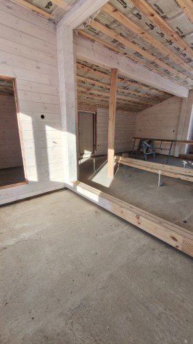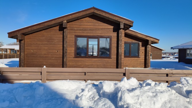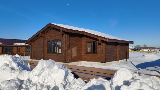 Материал стен: Клееный брус сечением 210х180 мм (толщина 210 мм). Высокая энергоэффективность и прочность.