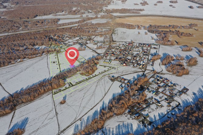 поселку ведет новая асфальтированная дорога. Участки расположены за