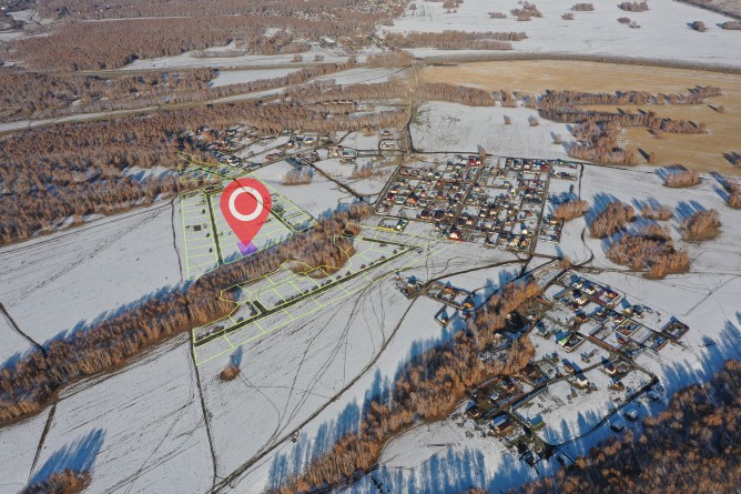 поселку ведет новая асфальтированная дорога. Участки расположены за