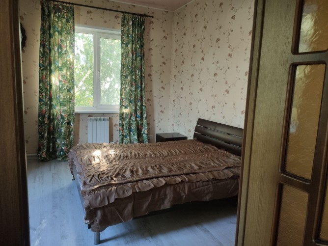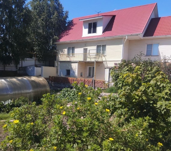 Верхний этаж дома из бруса. Стены нижнего этажа: фундаментные бетонные блоки /ФБС 40/ обложенные кирпичной кладкой, утеплены пенополистиролом 10 см. Имеется большая терраса с выходом с нижнего этажа. В доме два входа. Можно сделать жилым 3-й этаж / вставлены окна, усилен пол/.