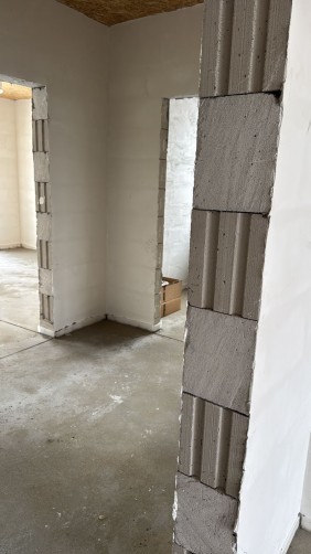 Одноэтажный дом 100м2 из 400мм Газобетона, облицовка кирпич на ленточном фундаменте. В дом заведены все необходимые для жизни коммуникации: Водоснабжение централизованное (скважина КП). Электричество разведено по дому. Отопление электрокотел с разводкой теплого пола по всему дому. Газ расположен по границе земельного участка.