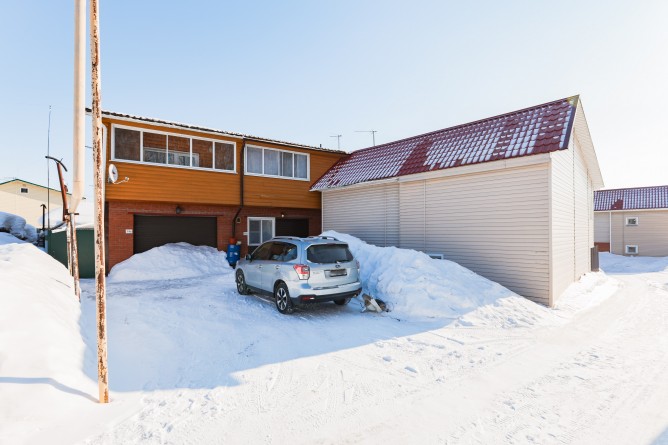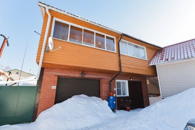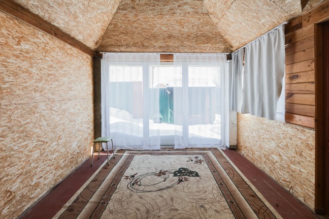 На втором этаже, находится большая кухня гостиная с видом на наше Обское море, хозяйская спальня, два просторных застекленных балкона на которых организовано пространство под отдых, спорт и хранение.