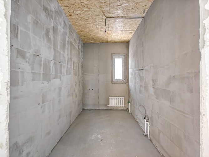Пол — механическая полусухая стяжка по маякам, финишная затирка пола