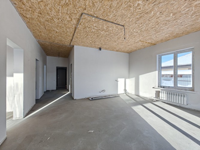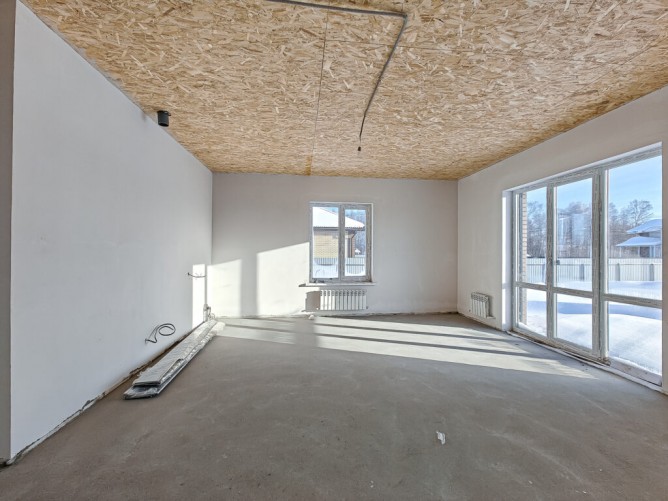 Коттедж состоит из кухни-гостиной — 29 кв.м, 3 (трёх) спален — 16; 14 и 13 кв.м., и вспомогательных помещений: холла, коридора, санузла и второго малого санузла, включающего в себя котельную, открытая терраса 15 кв.м. Высота от пола до потолка 3 метра. Все материалы и комплектующие в доме высокого заводского качества!