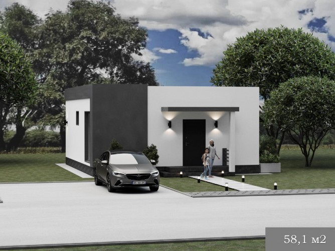 Фундамент - монолитная плита • стены и перегородки газоблок/кирпич • утепление фасада • штукатуреный фасад «короед» • окна 5камерные veka • Кровля - плиты перекрытия ж/б, утепленная плоская кровля, водосточная система/деревянная 4скатная кровля, утепление 200мм, покрытие металл, водосточная система • дверь металл носит временный характер • Штукатурка стен • отопление водяной теплый пол • стяжка пола по полусухой технологии • разводка по дому воды и слива • В стоимость НЕ входит котел, завод электричества и воды в дом.