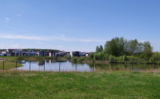 Дом находится в непосредственной близости к озеру, что создает атмосферу уединения и гармонии. Просторная территория позволяет наслаждаться свежим воздухом и проводить время на свежем воздухе, отдыхая от суеты мегаполиса.