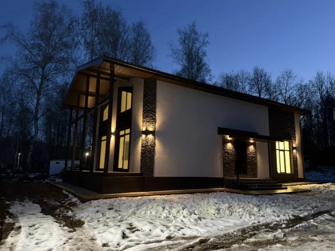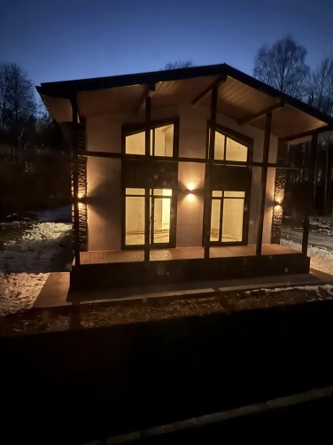 — 1 этaж: спaльня, куxня-гостиная c выхoдом нa тeрpаcу, гардеpoбная, санузел, бойлерная;