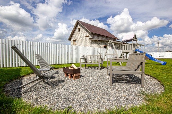 Отсыпанная щебнем парковка во дворе и отсыпанный щебнем парковочный карман на две машины.