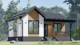 Компактный дом, есть все необходимое: две спальных комнаты, просторная кухня с зоной ТВ, сан.узел и гардеробная. Терраса 17.5 м.кв.