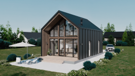 Деревянный одноэтажный дом с двухскатной крышей из 6 модулей. Высокие потолки- 3,5 м. Закрытая терраса- 20 м2. Панормное остекление. Прачечная. Внутренняя отделка white box. Дом идеален для комфортного круглогодичного проживания большой семьи.