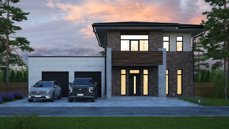 Красивый большой двухэтажный дом с оригинальными комбинированными фасадами облицовочный кирпич и декоративная штукатурка, интересной кровлей и гаражом на 2 авто. Имеет четыре спальни, одна из них мастер спальня с гардеробной и санузлом, просторную кухню гостиную, котельную, постирочную, второй санузел, закрытое от осадков крыльцо и просторную террасу.