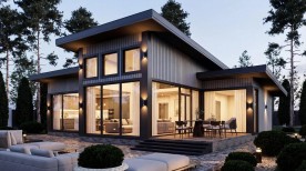 Одноэтажный дом с двускатной крышей, представляет собой классический вариант загородного дома. Двускатная крыша гармонично сочетается с окружающим ландшафтом.