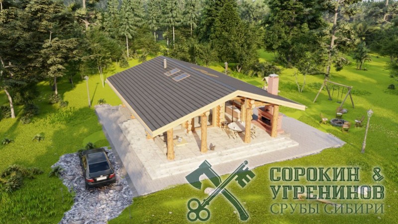 Отличная русская баня рубленая из бревна кедра, общей площадью 125м2. Размер сруба 9 на 13 метров. Классический проект русской бревенчатой бани из бревна диаметром 280-320мм. Баня имеет большую гостиную комнату с каминной печью, большие окна в пол, много света, а на потолке мансардные окна, и главное объемная и просторная парная, есть отдельная помывочная и санузел, хозяйственный узел, и большая терраса с кирпичной печью-барбекю.