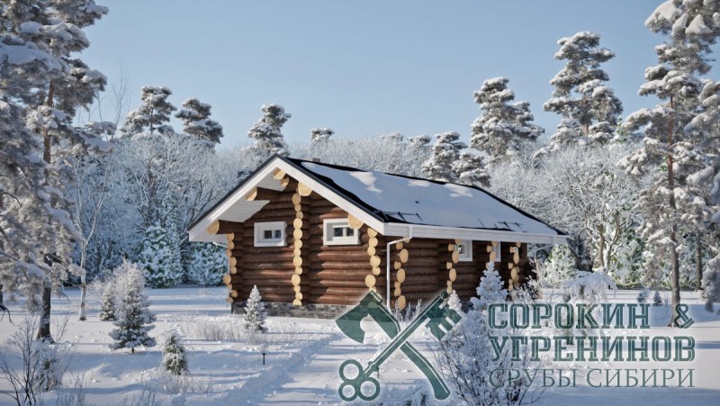 Сруб бани рубленый из бревна кедра диаметром 280-320мм, площадью 31,9м2. Размер сруба 5,2х7,6 метров по осям. Удобная планировка бани, парная, душевая, комната отдыха, санузел, тамбур, терраса. Сруб рубленый вручную в русскую чашу (охлоп), бревна окоренные гидро-окоркой (водой под высоким давлением), а так, же это можно сделать скобелем или лопатой, или строганное рубанком. Объем бревна в срубе 44,1м3. Баня была установлена в Новосибирской области в поселке Мочище в 2013 году.