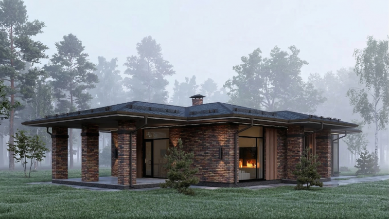 Отделка фасада - облицовочный кирпич, комбинированный с элементами планкена