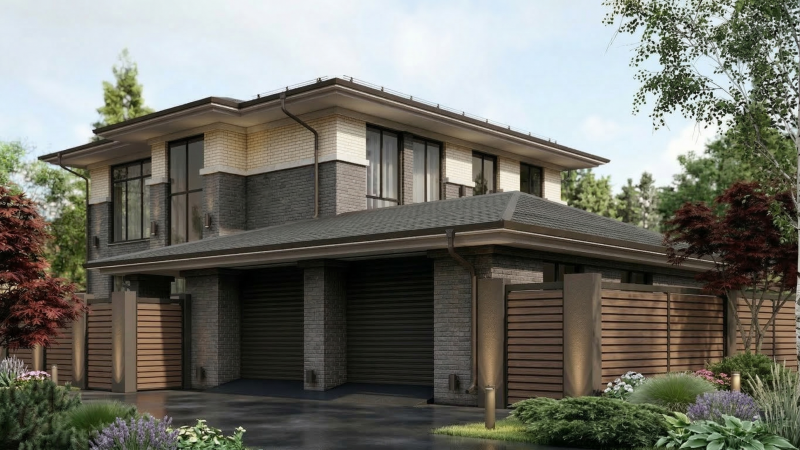 Гараж спроектирован таким образом, чтобы в него вместились два автомобиля и котельная с отдельным входом.