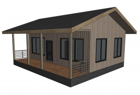 Каркасная технология PREFAB. Доставляют на место стеновые панели, собирают за 5-7 дней.