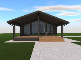 Основная специализация — строительство современных каркасных домов в скандинавском стиле с панорамными окнами.