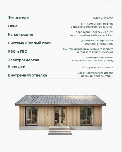 Цена указана за участок 1,2 млн. р. + подряд на строительство дома в предчистовой отделке 5,1 млн. р.
