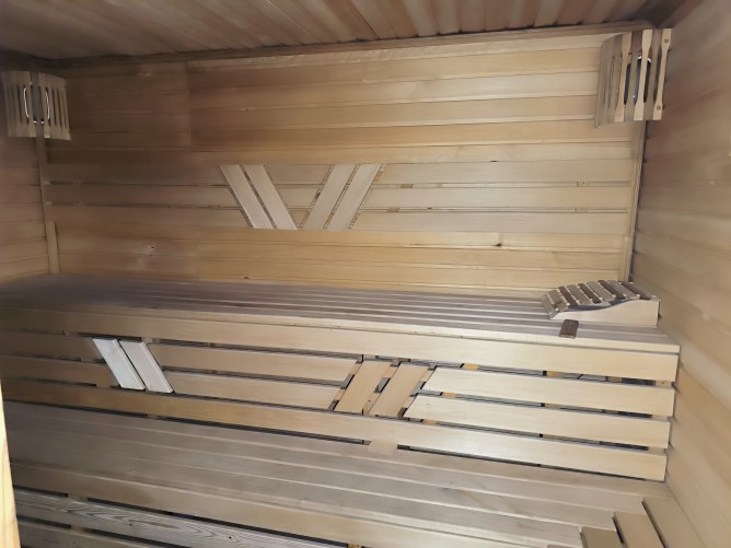 Продаётся уютный дом-баня площадью 120 квадратных метров на участке 32,64 квадратных метра . Дом внутри обшит блок хаусом, обогрев - дровами. Материал стен - брус, снаружи - минеральная вата и декоративная штукатурка.