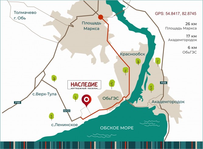 Расположение: 5 км от ОбьГЭС,25 км от метро "Площадь Маркса", 2 км до Обского моря и пляжей.