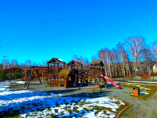 Асфальтированные дороги, детская площадка из экоматериалов, гостевая парковка. Скоро: собственный пляж, спортивные площадки и воркаут-зона.