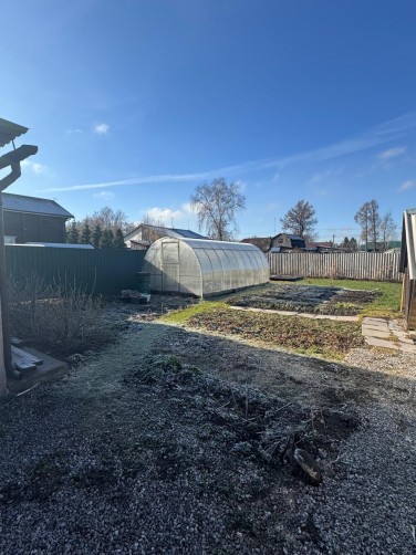 Земельный участок 9 соток, есть плодово-ягодные деревья, малина, смородина, клубника. Установлена большая теплица 3*6.