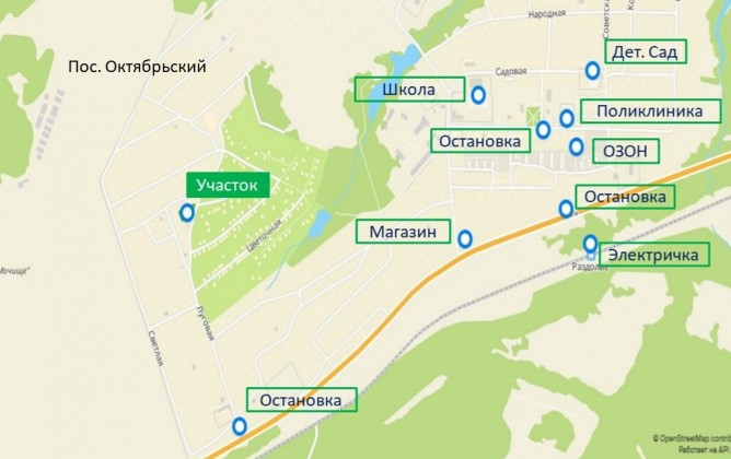 Инфраструктура: в 15 минутах ходьбы есть больница, школа, детский сад, магазины, автобусная остановка, а в 20 минутах станция электрички Раздолье.
