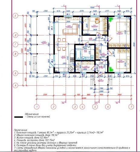Одноэтажный дом с панорамными окнами и большой террасой 21,3м.2