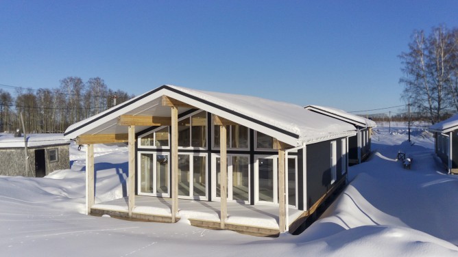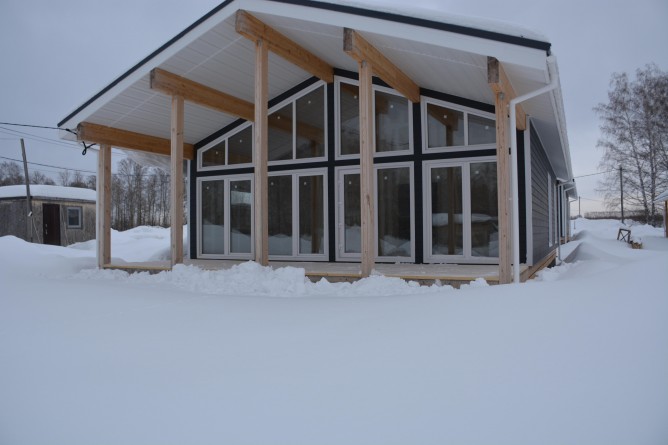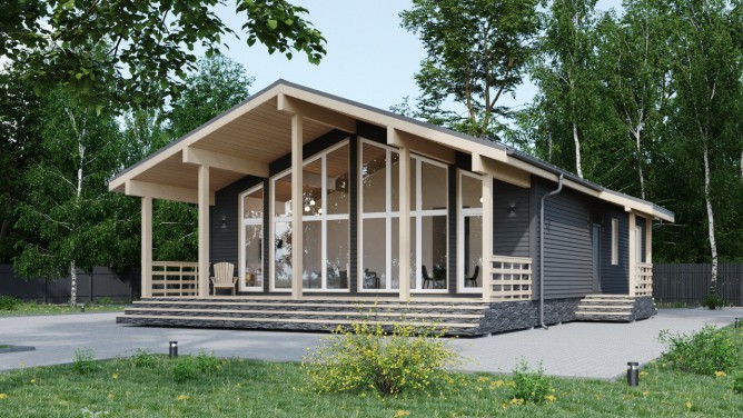 Одноэтажный дом с панорамными окнами и большой террасой 25,5м.2