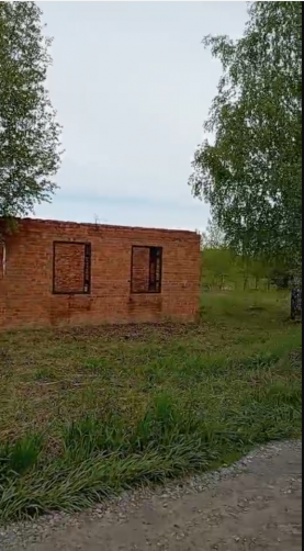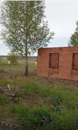 На участке стоит небольшой кирпичный дом (только стены -размер 6 метров на 6 метров, высота стен 2,8 метра, окна проемом 90 см на 120 см, дверь 90 см на 200 см ), растут красивые березы.