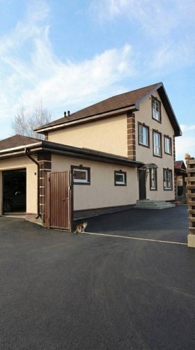 Кухня-гостиная, теплая терраса с панорамными окнами, гардеробная, санузел с душем, котельная, гараж.