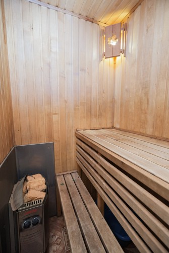 На пером этаже, находится просторная прихожая, детская спальня, жаркая сауна, душевая и санузел.