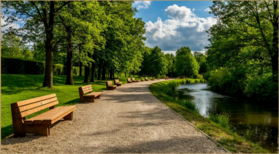 Парковая зона с лавочками