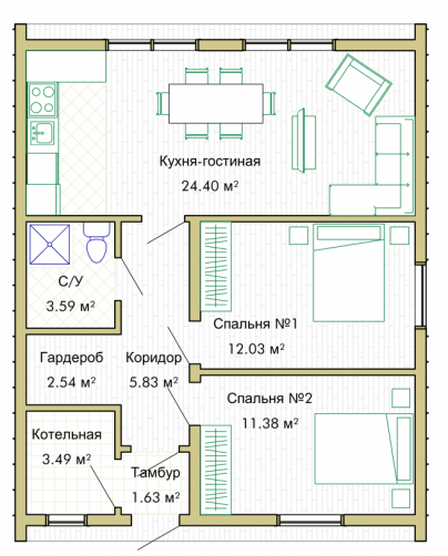 Барнхаус 64 м² с 2-мя спальнями №1068