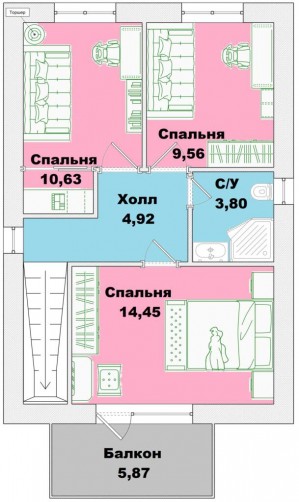 Входная группа оформлена в виде тамбура, который является тепловым шлюзом и препятствует проникновению горячего или слишком холодного воздуха с улицы в здание, а также оборудован нишей для размещения встроенного шкафа.